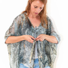 Our jackets are availiable with ribbon ties or hidden buttons and with or without hoods.
